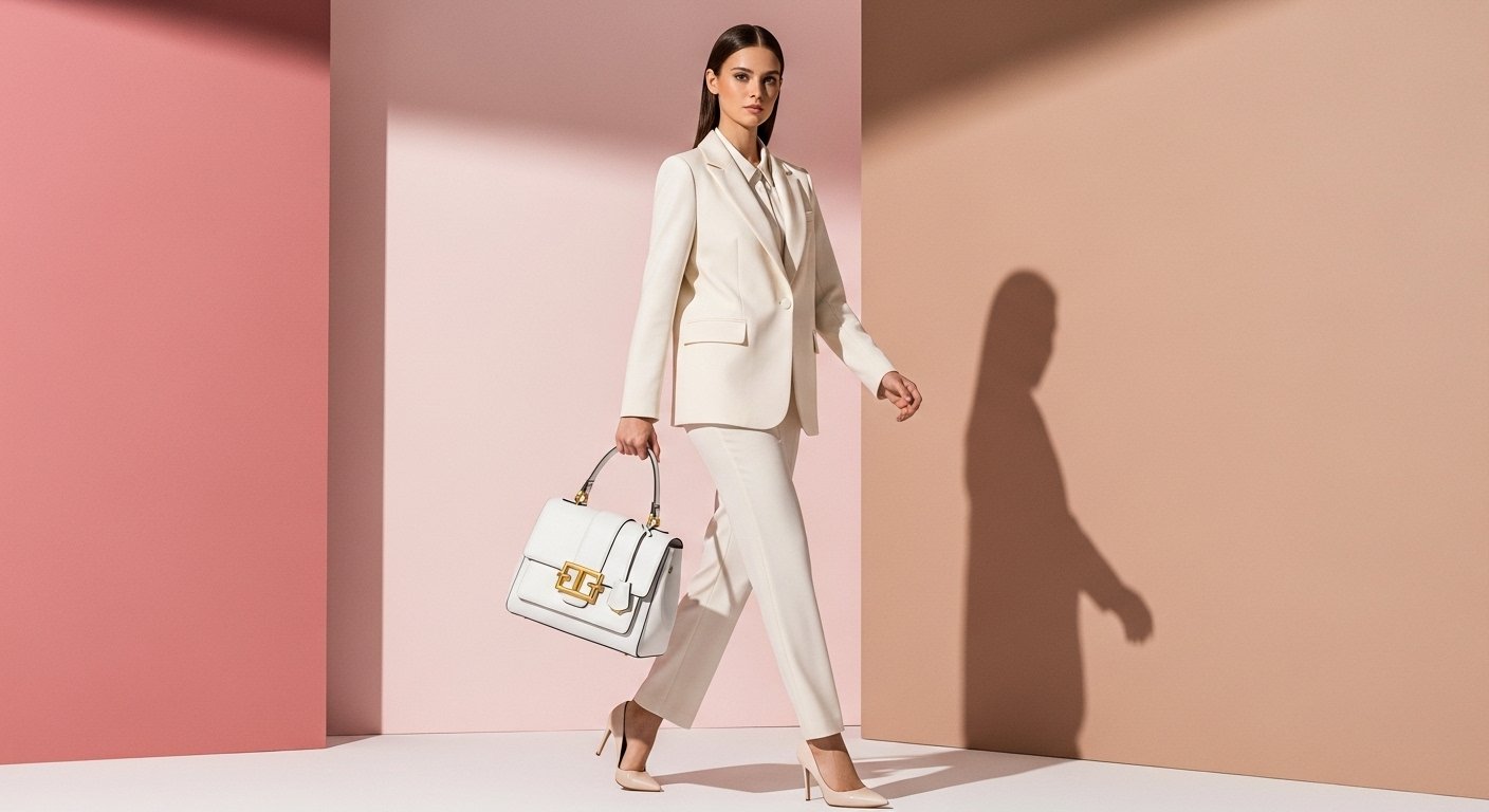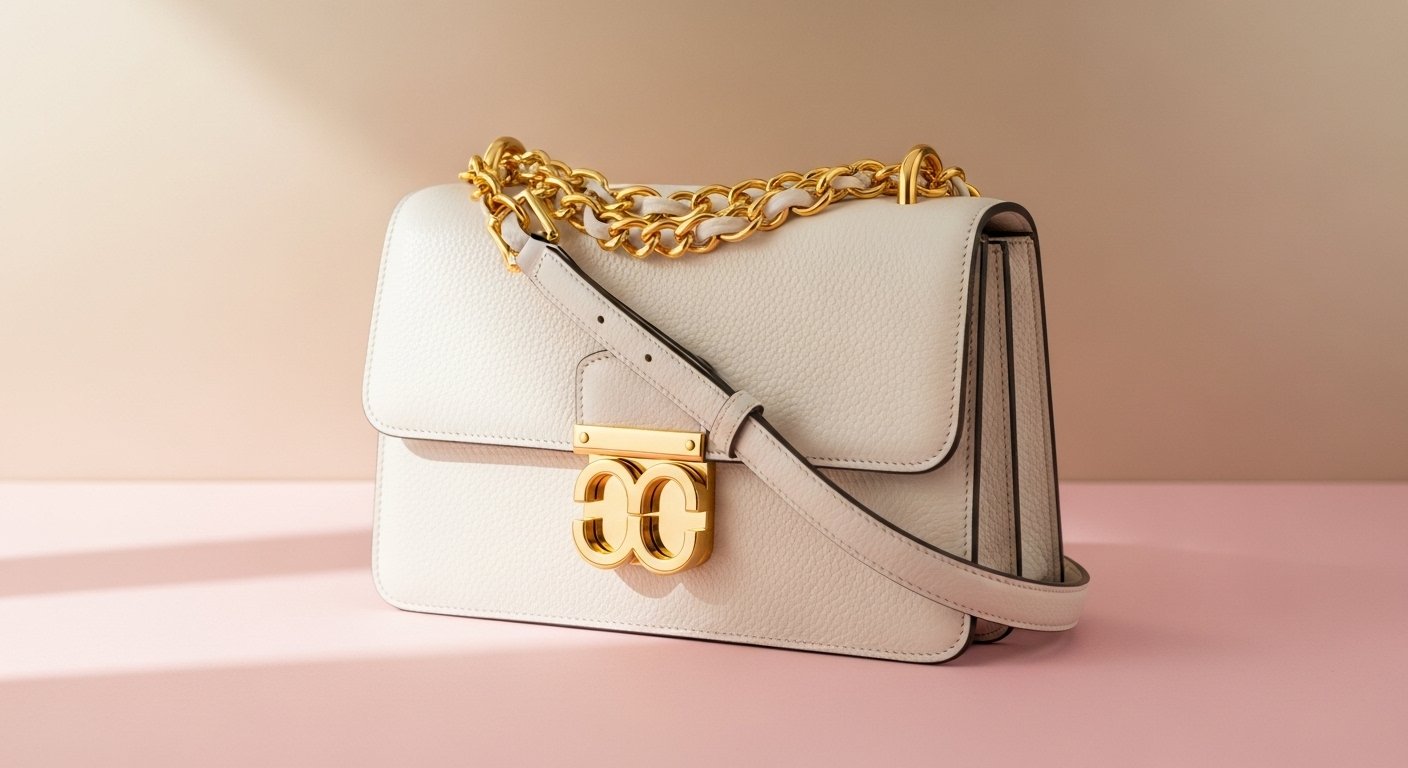Elegant White Handbag with Gold