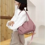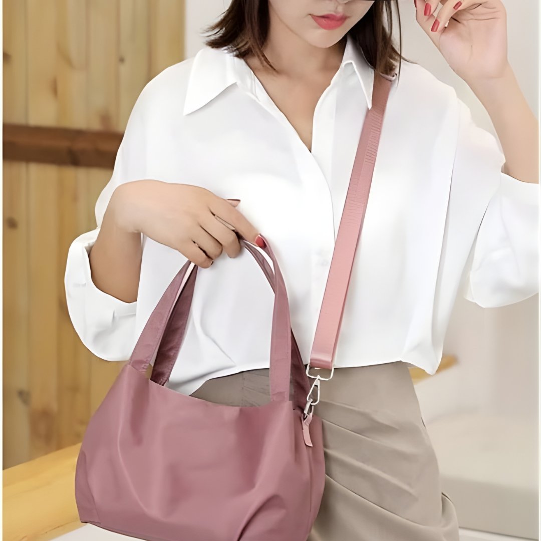 The spacious interior offers ample room for your phone, makeup, wallet, small tablet, and daily essentials. With its wide opening and comfortable dual straps, you can carry it on the shoulder or crossbody using the detachable long strap. The soft pink color adds a gentle, feminine touch, making it the perfect everyday accessory that enhances your style effortlessly.